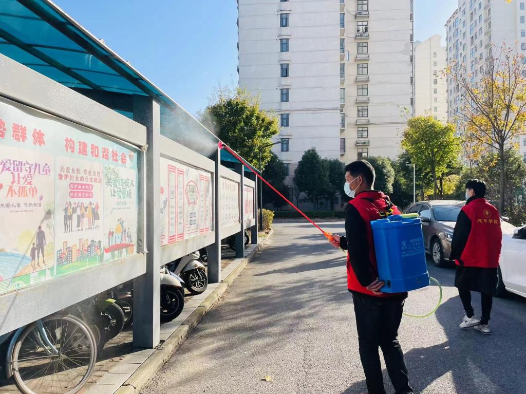 为充分发挥基层党组织和广大党员在社区结对帮建中的战斗堡垒和先锋模范作用,推动党员“双报到”工作走深走实,11月12日上午,赢博党总支开展“携手防疫、呵护和谐洁净家园”主题党日活动,党总支全体支委委员及党员教职工10余人参加。重点针对龙飞苑社区电梯厢、垃圾桶消杀大扫除、防疫宣传等,为巩固疫情防控成果继续贡献党员和志愿者力量。