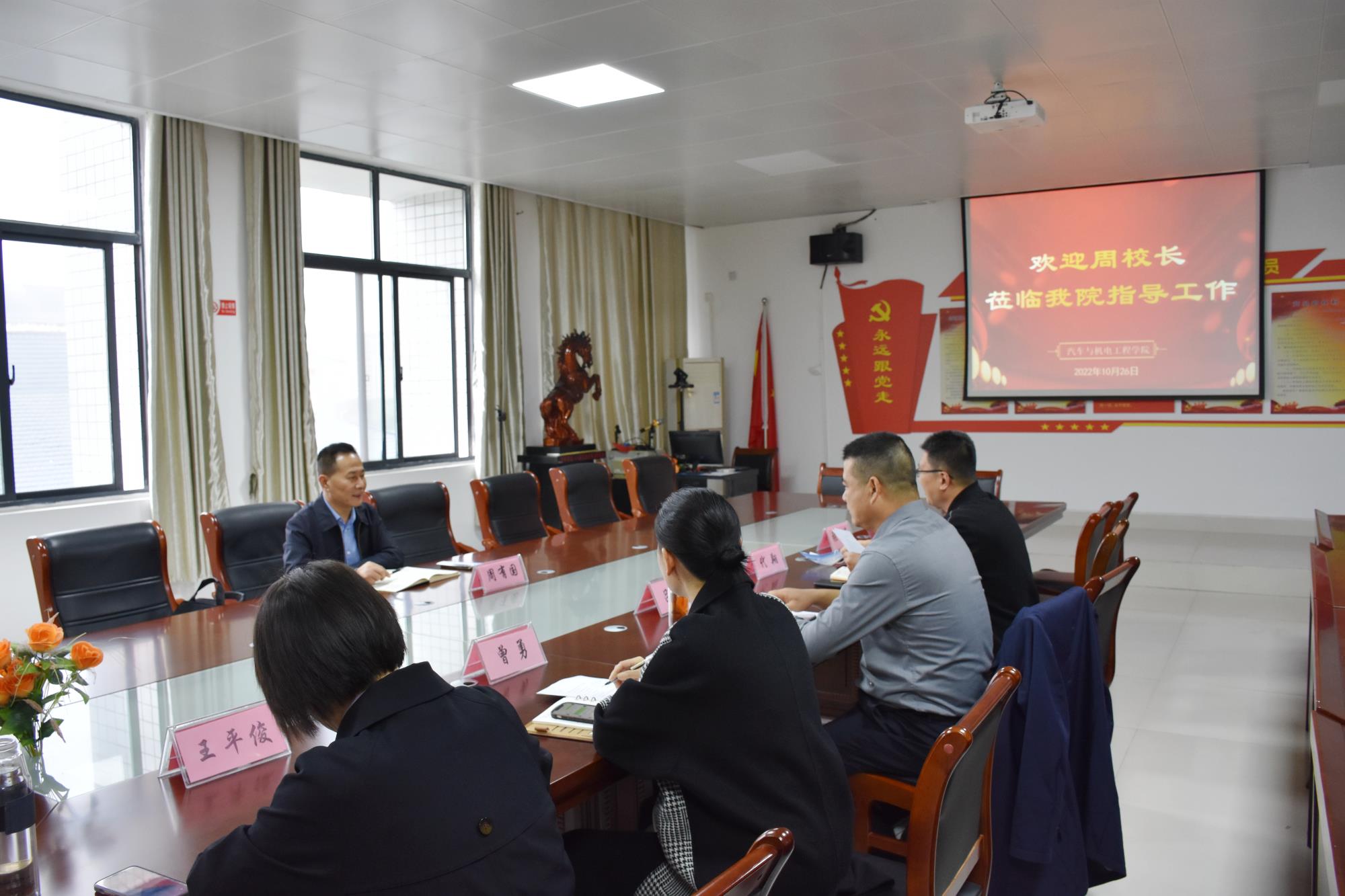 周有国认真听取了汇报,对汽电学院近年来取得的成绩给予了充分肯定,并对教学科研、人才培养等提出具体要求:一是加强师资队伍建设,优化师资队伍结构,通过三教改革不断提升人才培养质量;二是突出特色,创建品牌,围绕“新能源汽车技术”和“电气自动化技术”两个优势专业扎实推进专业群建设;三是要加快推进产教融合深度和广度,开展与龙头企业合作,将教学过程与生产过程对接,更好地服务地方经济发展,为学校“双高”建设和职业本科办学发挥更大的支撑作用。