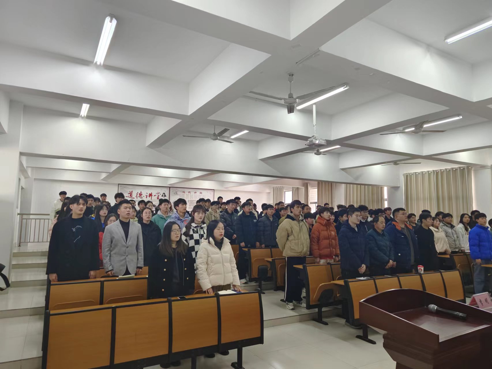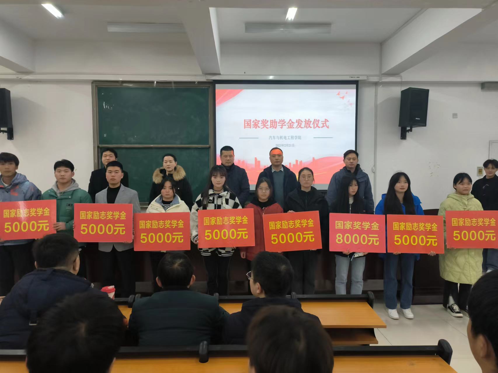 仪式在庄严的国歌声中拉开帷幕。党总支副书记张礼涛宣读了荣获国家奖助学金学生名单。学院领导为获奖同学颁奖并合影留念。