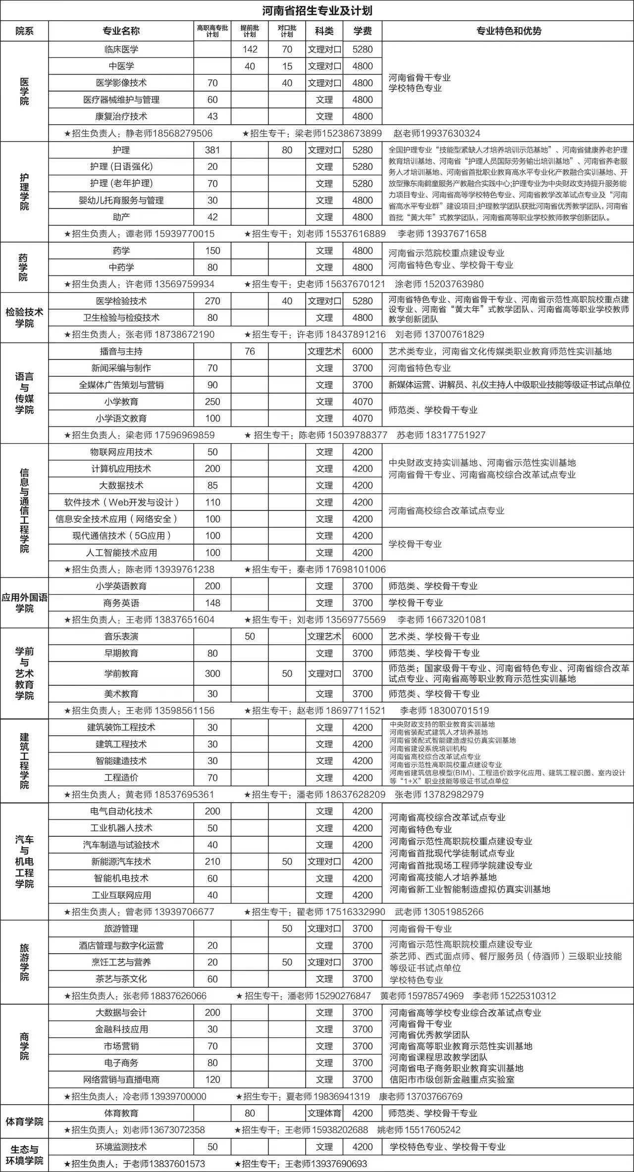 面向河南省高招专业计划
